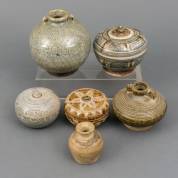 Divers Zuidoost-Aziatisch aardewerk, waaronder Sawangkhalok, 14/15e eeuw -één stuk met chips-, 14,5 x Ø 15 cm