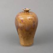 Japanse balustervormige Takatori ware vaas met bruin-paars flambé druipglazuur, gemerkt 'ma', 20e eeuw, 24 x Ø 14 cm