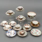 Diverse Chinees porseleinen kommetjes en schoteltjes met capucijner en Imari decors, voornamelijk 18e eeuw -defecten-