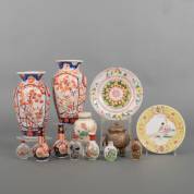 Divers Aziatica, waaronder Imari vazen en snuifflesjes