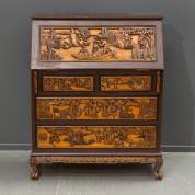 Houten klepsecretaire met rijk gesneden decor in Chinese stijl, 20e eeuw -gebruikssporen-, 112 x 94 x 44 cm
