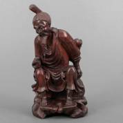 Chinees houten beeld: wijsgeer, midden 20e eeuw -droogtebarstjes-, 31 x 15 x 14 cm