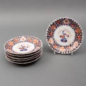 Serie van zes Japans porseleinen Imari borden, 19e eeuw -defecten-, Ø 22 cm