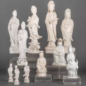Elf blanc de Chine beelden in de vorm van Guanyin, diverse formaten -defecten en gelijmd-