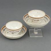 Paar Chinees porseleinen kom-en-schotels met polychroom Lowestoft decor, 18e eeuw -defecten-, 5 x Ø 12 cm