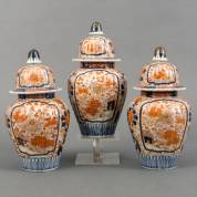 Serie van drie Japans porseleinen Imari dekselvazen, 19e eeuw, 26,5 cm