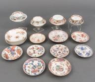 Diverse Chinees porseleinen kommetjes en schoteltjes met polychrome decors, alle 18e eeuw -defecten-