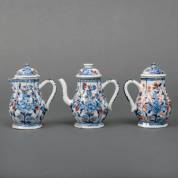 Drie Chinees porseleinen Imari kannetjes met floraal decor, eerste helft 18e eeuw -alle defect-, 12,5 x 12 x 6 cm
