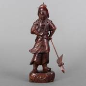 Chinees houten beeld: krijger, midden 20e eeuw, 41 x 18 x 14 cm