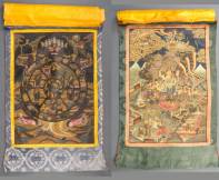 Twee Tibetaanse boeddhistische thangka's, 65 x 44 cm