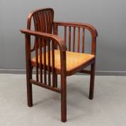 Bruingebeitste houten stoel met rotan zitting en verstelbare rugleuning, ontwerp Adolf Lorenz, uitvoering Thonet, eerste kwart 20e eeuw -gebruikssporen-, 89 x 60 x 54 cm