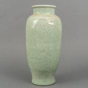 Chinees keramiek celadon geglazuurde vaas met anhua lotusbloemdecor, modern, 38,5 cm
