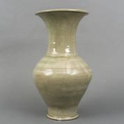 Balustervormige Chinese aardewerk vaas met groen craqueléglazuur -chip van lip en standring-, 40 cm