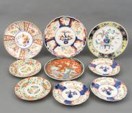 Negen diverse Japans porseleinen borden -enkele chipjes-, Ø 31 cm