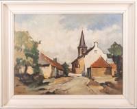 Hollandse School: dorpsgezicht, olieverf op board, gesigneerd F. Bretens, 44 x 59 cm