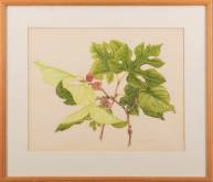 Adriana Goedhart (1920), moerbeitakken met vruchten, uit een tuin aan de Rozengracht, Amsterdam, aquarel, gesigneerd, 28 x 36 cm