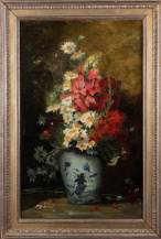 Hollandse School: bloemstilleven, marouflé, niet gesigneerd -kleine restauratie-, 64 x 39 cm
