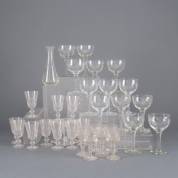 Series van dertien, tien en zes geslepen glazen, en een karafje