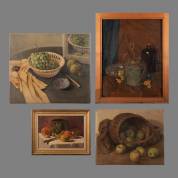 Petrus van Gils (1879-1953), vier stillevens, waarvan twee olieverf op doek, één marouflé, en één olieverf op board, en waarvan één gesigneerd, één gemonogrammeerd