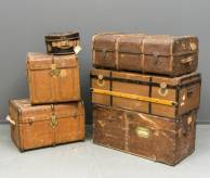 Vijf hutkoffers en een hoedenkoffer, 44 x 98 x 46 cm