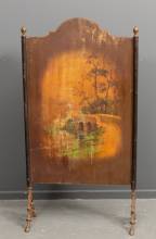Metalen zomerhaardscherm met polychroom decor van visser op brug, 115 x 61 x 22 cm