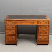 Eiken damesbureautje met groen lederen blad en negen lades, Engeland, circa 1930 -defecten-, 73 x 120 x 62 cm