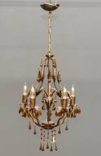 Vijflichts bronskleurig pegelkroonlampje met bruine glazen pegels, 95 x Ø 41 cm