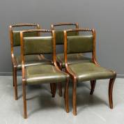Serie van vier mahonie stoelen met donkergroene skai bekleding, circa 1900, 86 x 50 x 54 cm