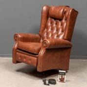 Relaxfauteuil met bruine gecapitonneerde lederen bekleding, uitvoering Well-fair, 112 x 84 x 105 cm