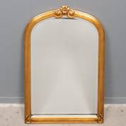 Facetgeslepen spiegel in goudkleurige lijst met afgeronde bovenkant, 100 x 65,5 cm