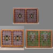 Drie glas-in-loodramen -één ruitje gesprongen-, 89 x 128 cm