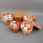 Vijf theemanden, waarvan vier met Chinees porseleinen serviesdelen, modern, 20 x 30 x 23 cm
