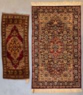 Pakistaans tapijtje Karachi, en Anatolisch tapijtje -klein tapijtje met lijmvlek-