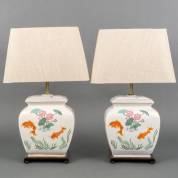 Paar porseleinen lampvoeten met gedrukt karperdecor, uitvoering Franklin Mint, 56 cm