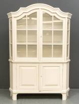 Witgeschilderde houten vitrinekast met twee beglaasde en twee dichte deuren, 20e eeuw, 207 x 145 x 38 cm