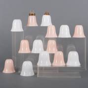 Serie van zeven opaline en zeven roze opaline klokvormige hanglampenkapjes, 8 x Ø 8,5 cm