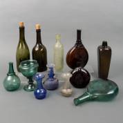 Diverse oude glazen flessen -kleine defecten-, 32 cm
