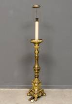 Grote messing penkandelaar vermaakt tot lampvoet -gebruikssporen-, 142 cm