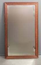Facetgeslepen schoorsteenspiegel in gesneden eiken lijst, circa 1900 -spiegelglas licht verweerd-, 152 x 92 cm
