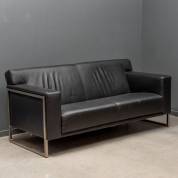 Zwart lederen tweezits bank op chromen onderstel, uitvoering Montel, 80 x 176 x 85 cm