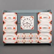 Houten keukenpottenrek met aardewerk laatjes en klokje -kleine defecten-, 45 x 60 x 15 cm