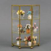 Serie van twaalf keramische miniatuur bloemenmanden, genaamd 'Flowers of the year', uitvoering Franklin Mint, 1981, daarbij: glazen vitrinekastje en één ander porseleinen bloemenmandje -enkele minieme chipjes, scharniertje deurtje kapot-, 26,5 cm