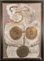 Schilderij: figuur, gemengde techniek op papier, onduidelijk gesigneerd, gedateerd '92, 97 x 68 cm