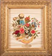 Borduurwerk in lijst: bloemenvaas, 19e eeuw, verso toegeschreven aan Maria Christina Geertruida Hessen (1832-1907) -enkele defecten-, 32 x 28 cm