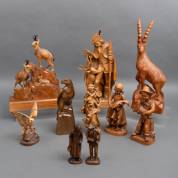 Tien houten beelden: dieren en figuren, Schwarzwald/Oostenrijk, tweede helft 20e eeuw, 46 cm