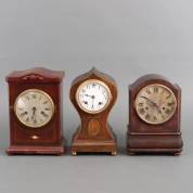 Drie diverse pendules in houten kasten -gebruikssporen-, 30 x 21 x 13 cm