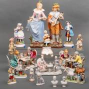 Diverse aardewerk en porseleinen beeldjes en beeldgroepjes, waaronder Capodimonte, Napels, en Staffordshire, Engeland
