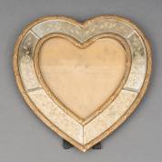 Hartvormig fotolijstje met vergulde sierlijstjes en bloemdecor onder de gefacetteerde ruitjes, modern -roestvlekjes-, 26 x 25 cm