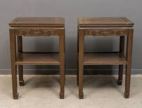 Paar hardhouten wandtafeltjes met lade, China, eind 20e eeuw -krassen-, 75 x 50 x 40 cm