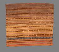Katoenen geweven tapis met metalen gouddraad geborduurde randen, tumpals en letters, Sumatra, Indonesië -veel gouddraad los, sleets-, 110 x 118 cm